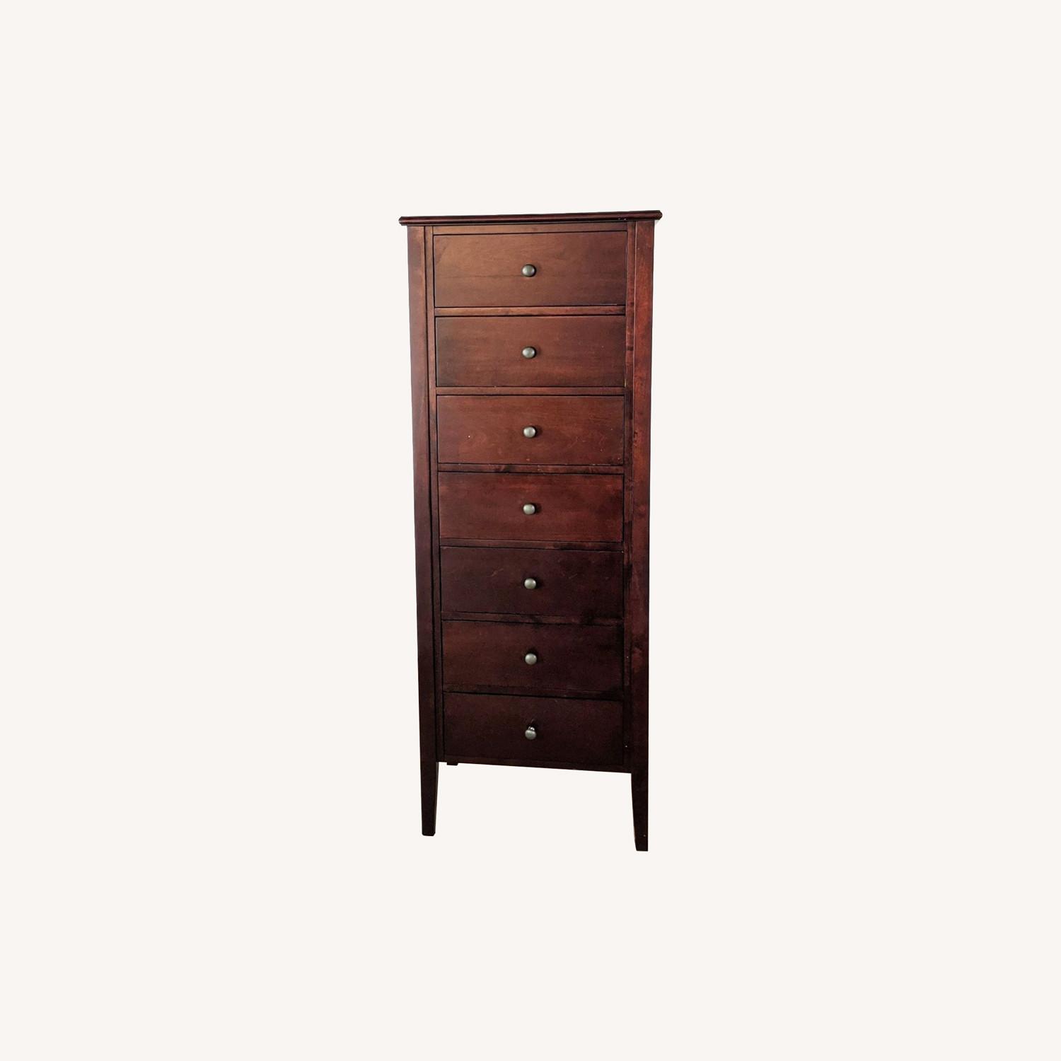 Seller's Notes:Contemporary. Tall And Narrow, Dark Finish Six-Drawer Chest