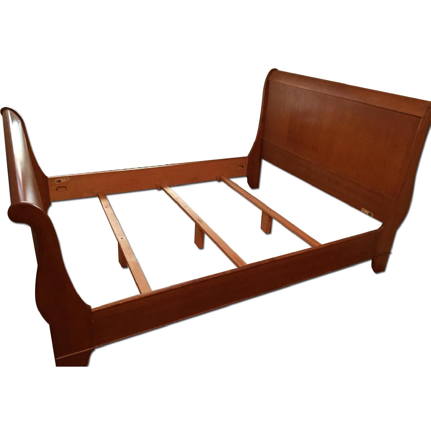 Seller's Notes:Nice wooden slay bed, golden brown wood. Moved and now need something much smaller.