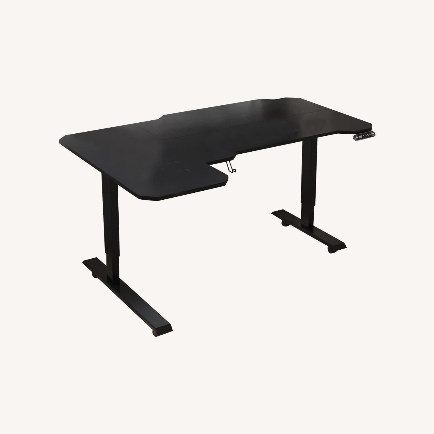 Great condition, used <11 months, 4 standing desk settings, rises up to 59 inches (outlet plug in to power).