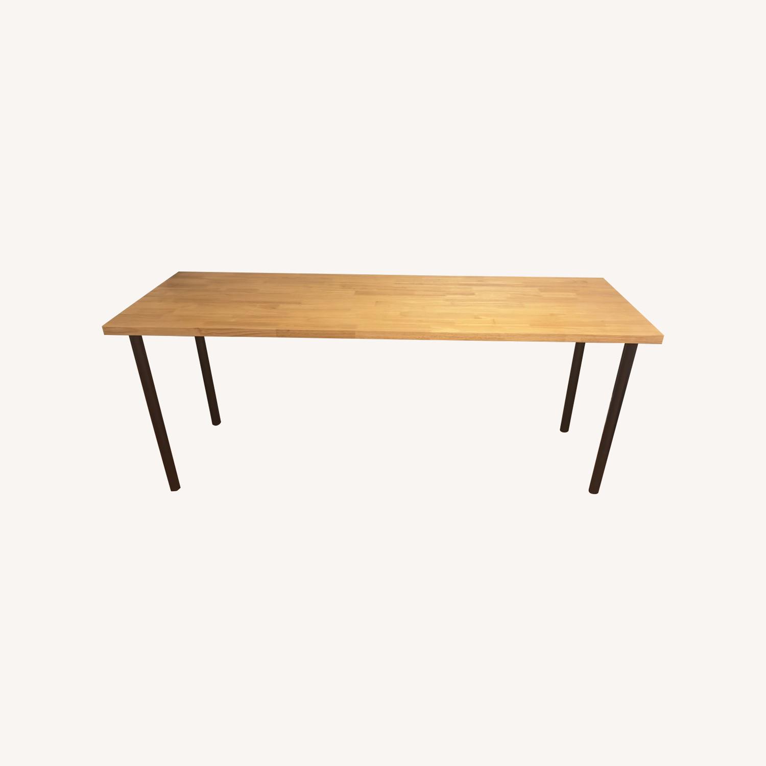 Seller's Notes:Bought a Husky work bench top from Home Depot and bought metal tube legs and added them on myself. The legs have leveling feet, and I also added a power strip on the underside of the desk so it’s easier to power my computer and everything else.
