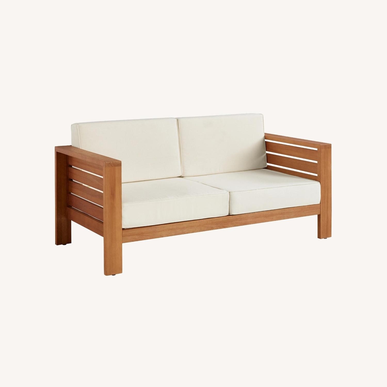 Create a comfy and stylish setting for your alfresco festivities with our Formentera outdoor occasional furniture. The bold beauty of our contemporary occasional bench comes from eucalyptus wood construction highlighted by a natural finish. With comfy oyster-gray cushions, its deep seat and chunky, slatted profile are ideal for resort-style lounging.