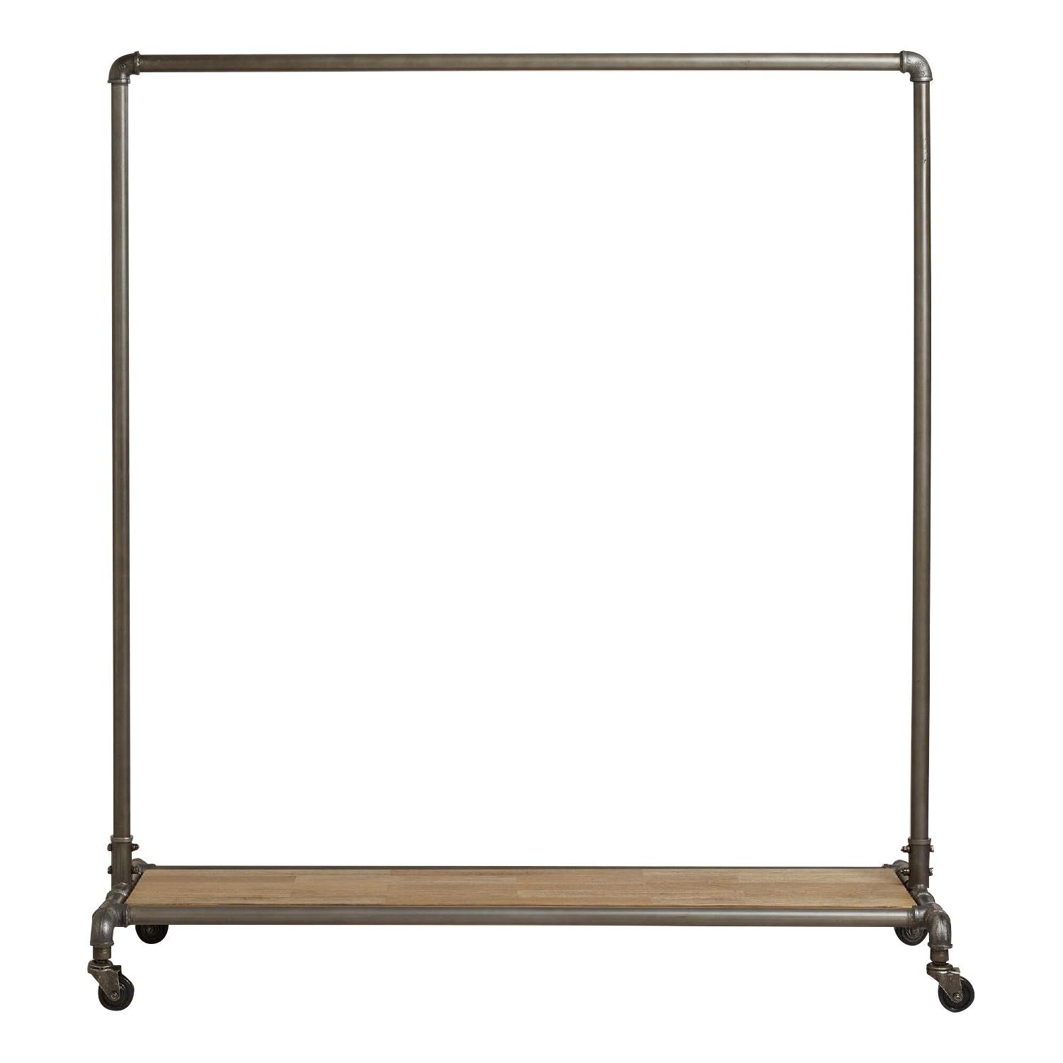 Seller's Notes:Heavy duty (50lbs) metal/acacia wood wardrobe rack. Was bought for me as a gift, but too large for my apt. Completely unopened. Description from website: A clever solution for loft apartments, garages and rooms with no closet space, our industrial-inspired Clea Pipe Clothes Rack doubles as a moveable coat rack. It's a handy piece to roll out when you have company thanks to wheels with locking casters. Crafted of metal and solid acacia wood with distressed finish 50 lb. weight capacity World Market exclusive Made in Vietnam Overall: 57.6"L x 22.3"W x 65.1"H, 52.5 lbs. Shelf: 54"W x 13.3"D