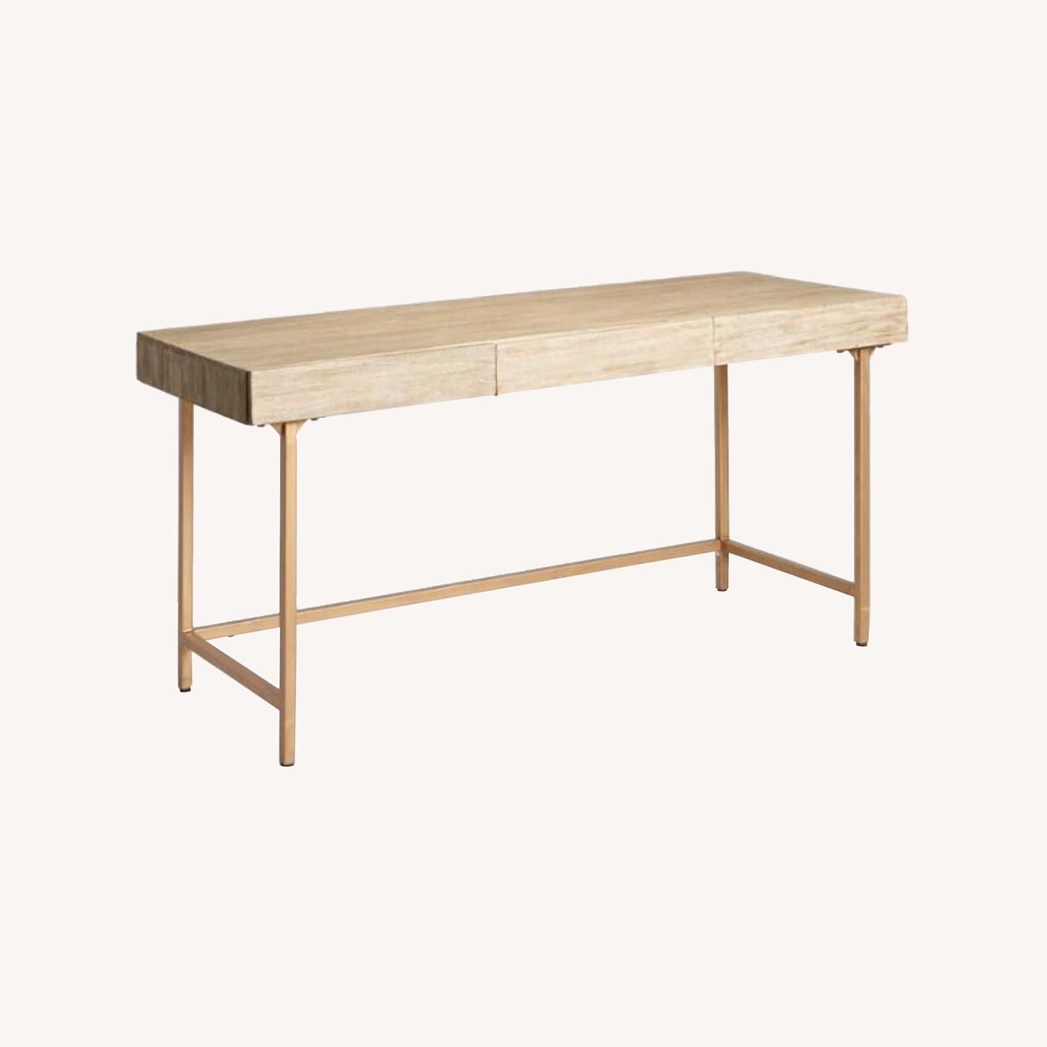 Seller's Notes:This gently used World Market 3-drawer light driftwood and gold matte metal desk is too big for my new home office! This modern storage-friendly desk is versatile and can be used as an entry table. Dimensions Width: 60 inches Height: 30 inches Depth: 24 inches