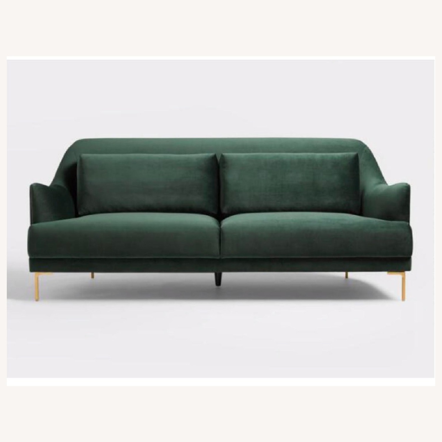 Seller's Notes:For sale: gently used green velvet couch with cushions and gold legs, purchased from World Market a couple years ago.