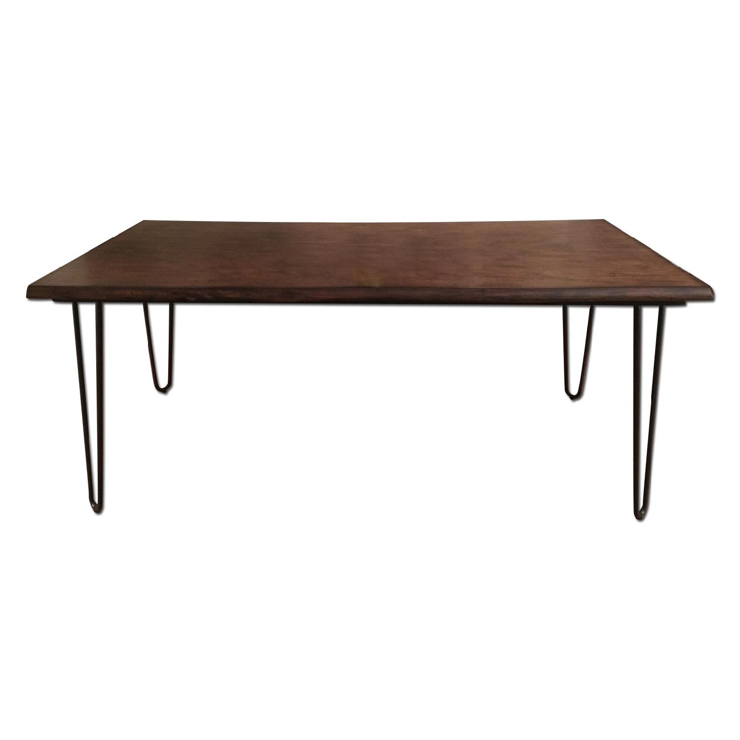 Seller's Notes:I'm selling a nearly brand-new dining table because it's too big for my apartment. The table is made of wood and has four hairpin legs. It has a finished, yet live edge look that goes with most decor. It's a solid, beautiful table that comfortably seats up to six people. I'm really sad that I have to let it go, but it's taking up too much space in my apartment.