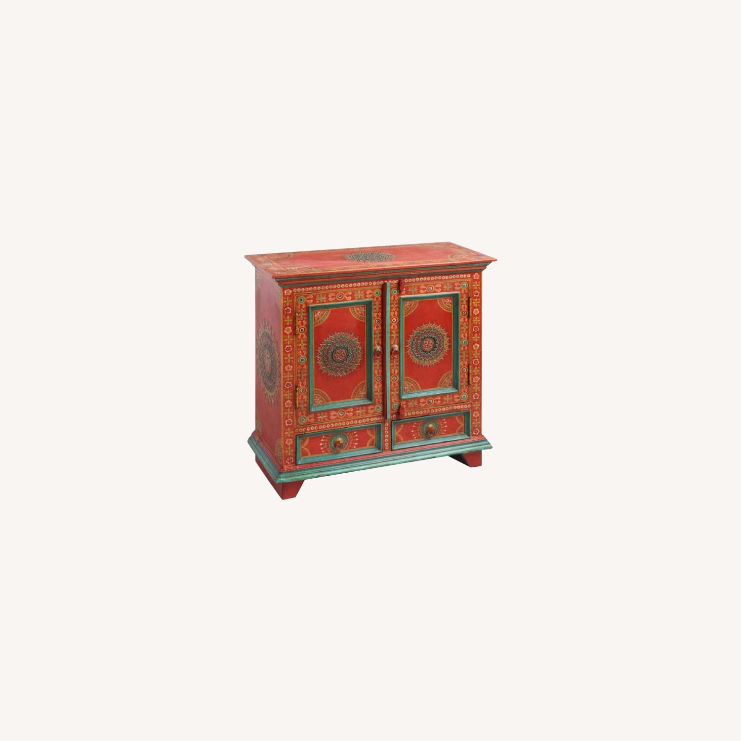 World Market Red Floral Painted Wood Cabinet