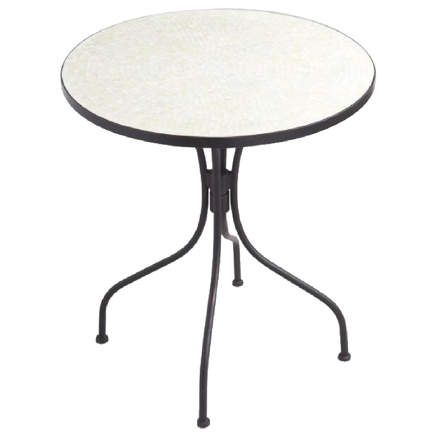 Seller's Notes:This beautiful bistro table can be used outdoors or indoors. You will get so many compliments! Comfortably fits dinner for two. The only reason I am selling is because my roommate and I are both moving and no longer need a table.
