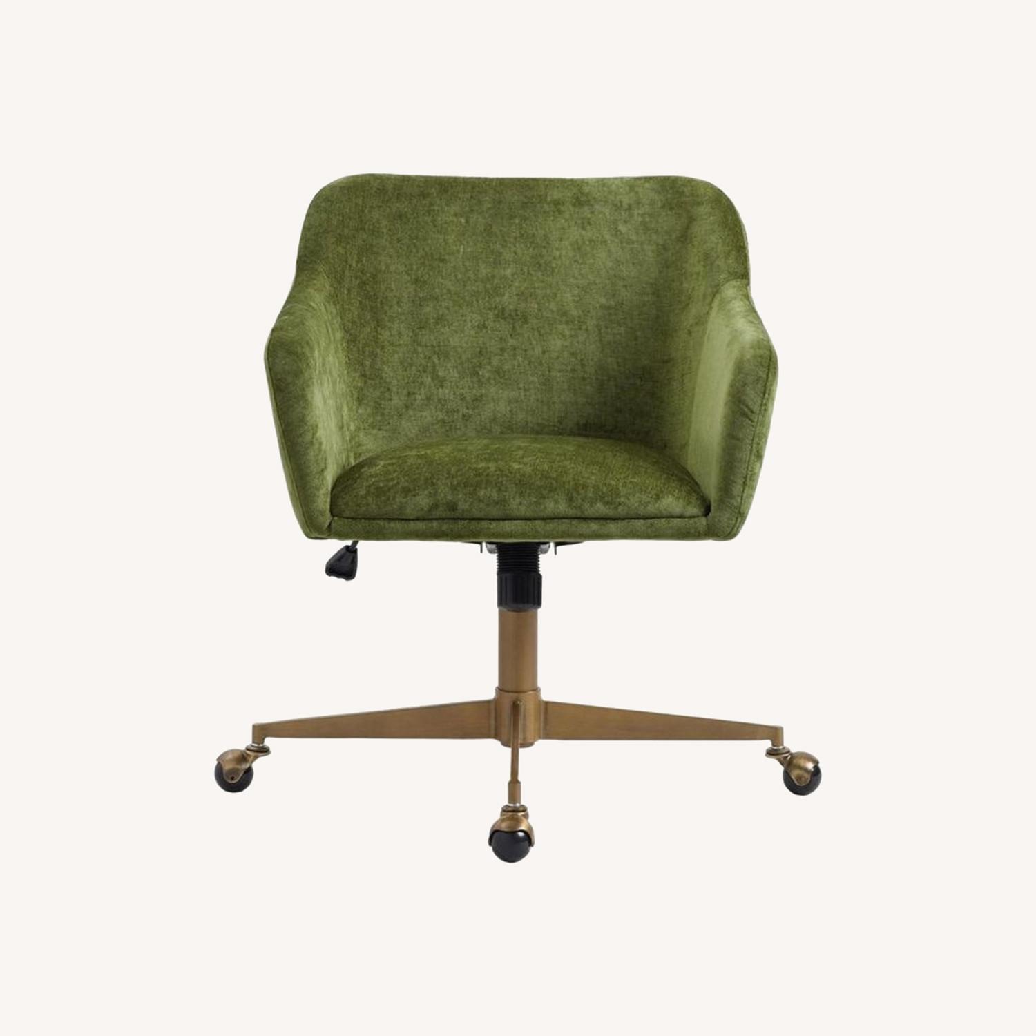 With a clean, minimal profile and plush chenille-like fabric upholstery, our Zarek mid-century office chair brings retro charm for your workspace. Available in your choice of hues with antique brushed-gold metal legs, a full swivel and rotating casters, this inviting desk chair has mid-century-modern style to spare.