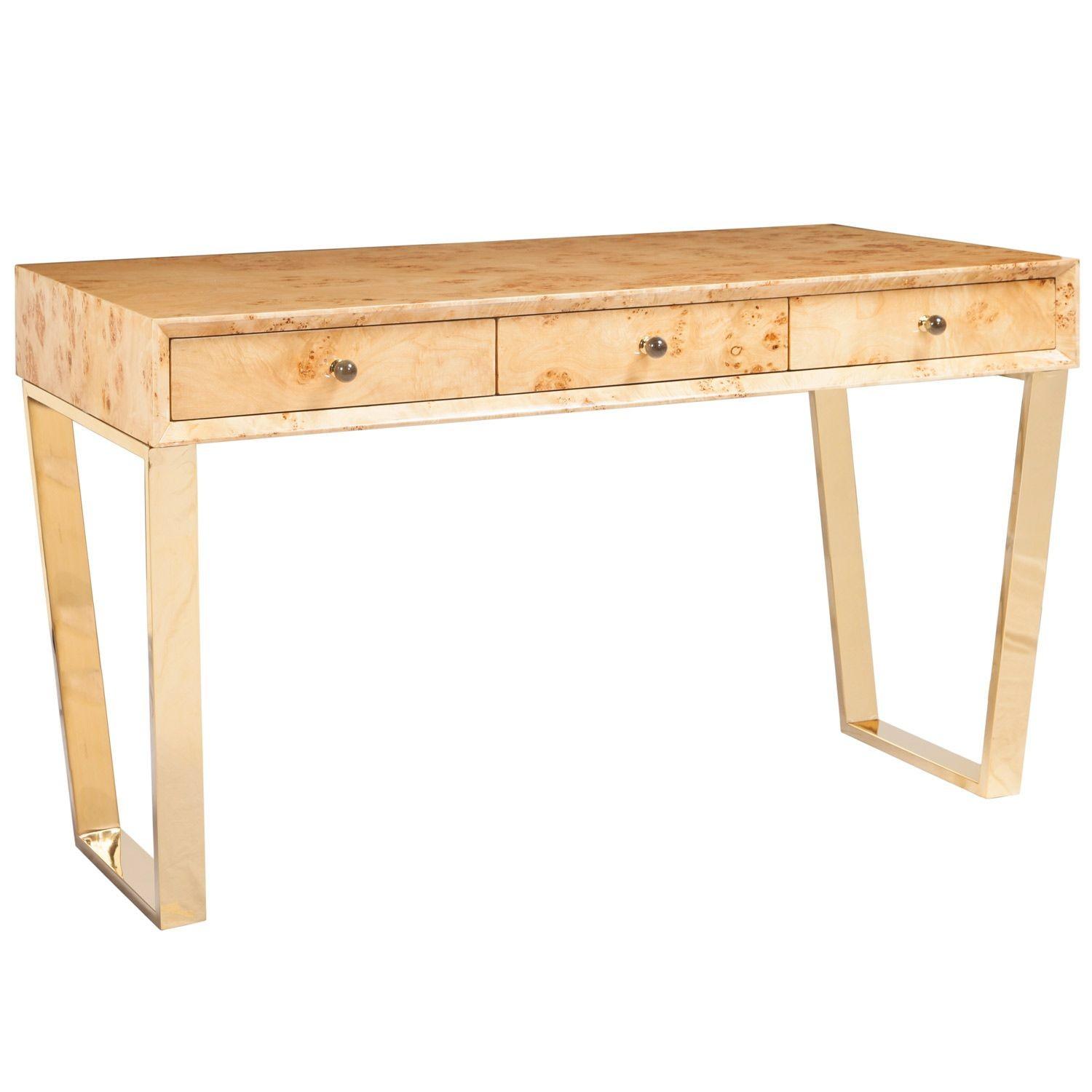 Worlds Away Patton Burl Wood w/ Brass Desk