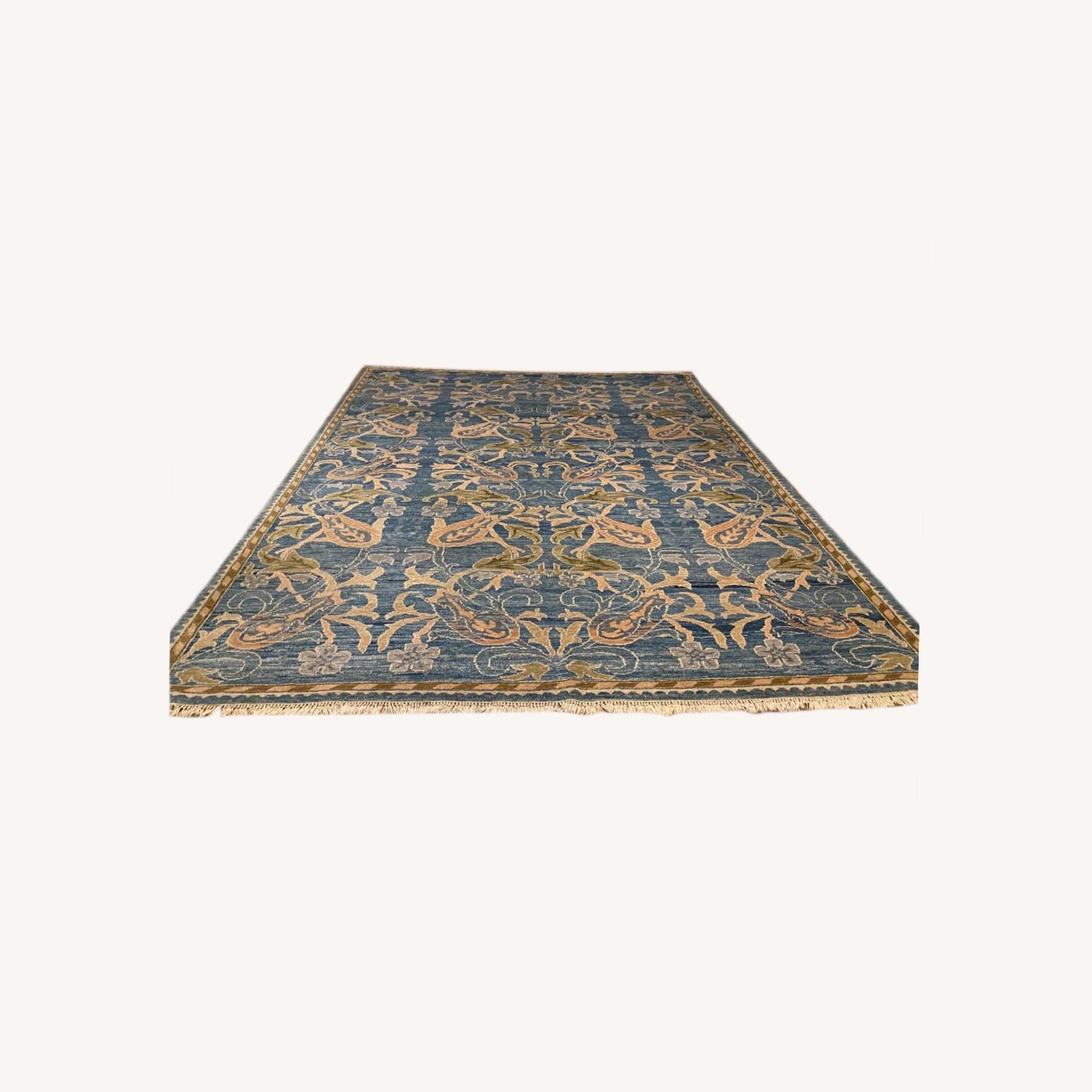 Seller's Notes:Beautiful oriental woven rug with fringe on the sides. Multicolor with blues, whites, tans, and browns. Bought this at an estate sale 7 years ago. Originally $3,000. The rug does not have a tag and is most likely made of wool. Rug is in good condition and is soft on your feet. The dimensions are 8’11” x 11’7” including the tassels on the end of the rug.