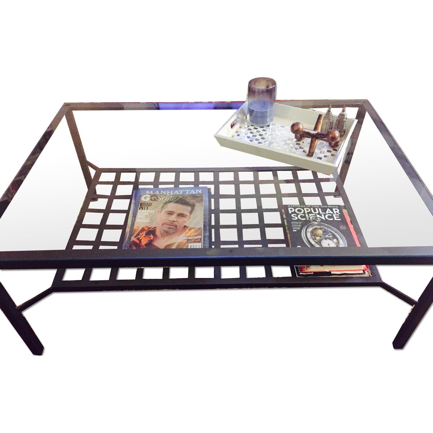 Wrought Iron Coffee Table w/ Glass Top & Bottom Shelf