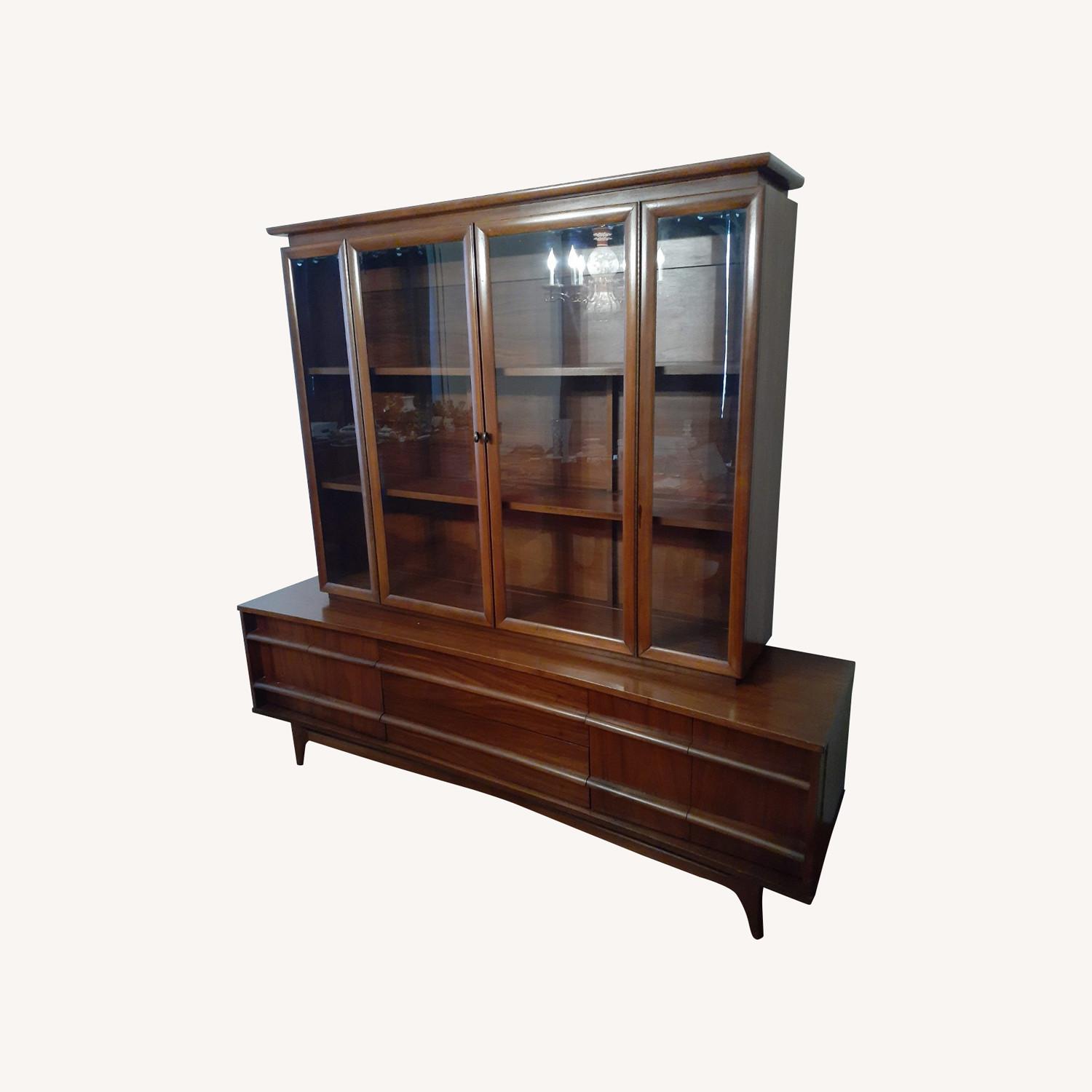 Seller's Notes:Young Manufacturing Company Mid Century Modern China Cabinet is part of a three piece suite which includes a credenza, dining table with custom made glass top and 6 chairs. Is dated on the back 5-1971. These pieces have been in my parents home since then and has been well taken care of.