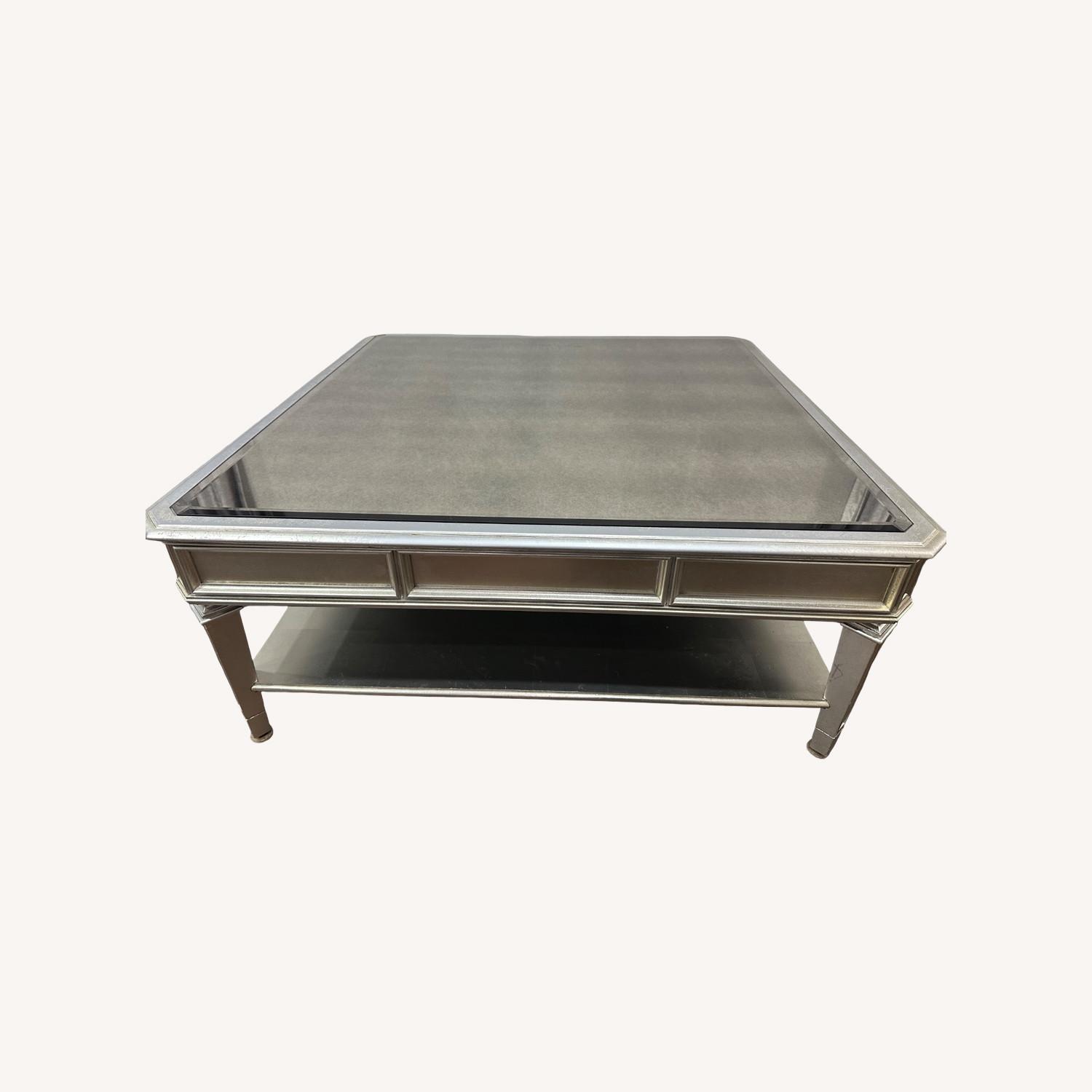 Seller's Notes:Z Gallerie Mirrored Coffee Table – Palais Style Elegant Z Gallerie mirrored coffee table, from the Palais collection Features clean lines and reflective panels for a timeless glam look. • Brand: Z Gallerie • Style: Glam / Contemporary • Finish: Mirrored • Condition: Very good; light wear consistent with normal use, small discoloration at the bottom of the table A striking statement piece that adds light and sophistication to any living room. Originally retailed for a premium price and no longer available.