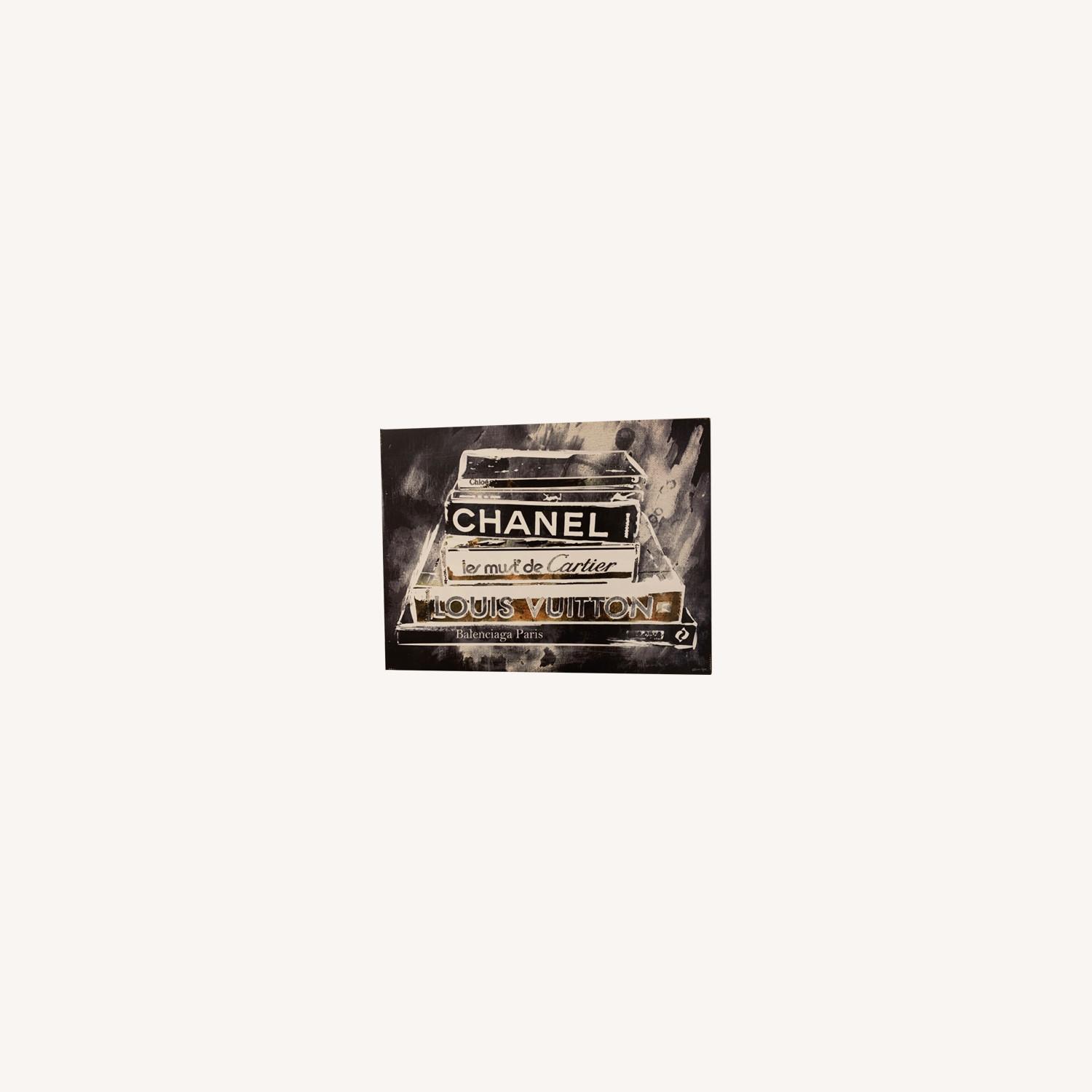 Seller's Notes:Highlighting couture designers, stacks of style driven books are juxtaposed against an array of tonal hues. Infusing its surroundings with style, each piece in the four part Fashion Series has been gallery wrapped for modern appeal. Gallery wrapped giclee print on canvas, hand-varnished. Made in USA.