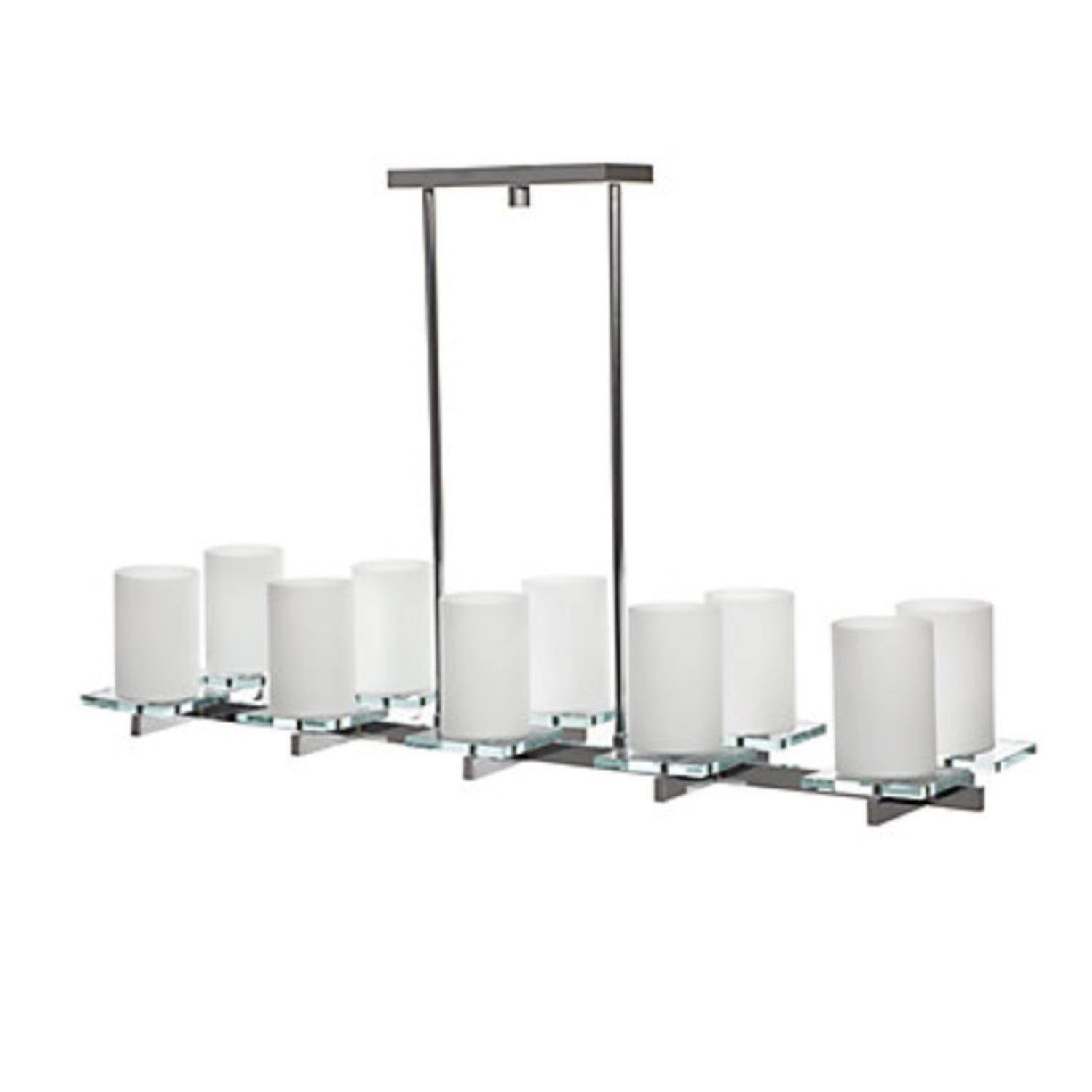 Seller's Notes:Z Gallerie Ventura Chandelier. We do not have the additional 12" rods that come with this piece. The silver shows some discoloration but otherwise in great condition. Only noticeable if you are looking for it. The piece is currently on sale at Z Gallerie for $299. Official description below with ALL CORRECT MEASUREMENTS. We are moving and trying to sell ASAP! Continuity and contemporary architecture says everything about this hanging lamp. Two sleek steel bars with a chrome finish stream down from the lamp, firmly attaching to a large platform. The uninterrupted and clean design of the Ventura Chandelier creates the illusion that the frosted glass shades float in the air, innovatively illuminating your dining room. Height - 26" Width - 43" Net Weight - 29 lbs Chain Length - N/A Ceiling Plate - N/A Rod Length - Comes with 2 additional 12" extension rods Bulb Socket Type - E26 Standard Medium. Accommodates CFL Bulbs. Bulbs not included. Glass Shade - 4" x 5.5" (Frosted) Max Wattage - 40 Watts Number of Lights - 10