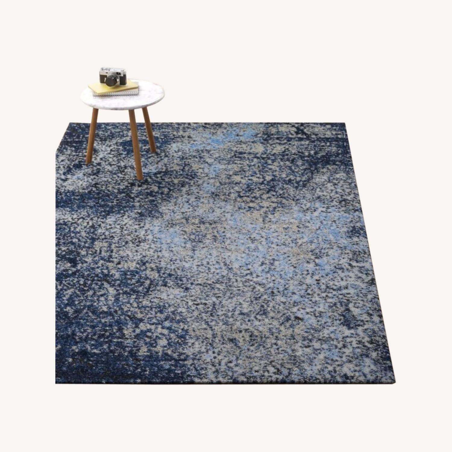 Seller's Notes:I love this rug and had it less than a year in my living room. But sadly I am moving and need to sell some furniture. I bought it from Wayfair brand new for $499.99. This area rug warms up hardwood and tile floors while setting the stage for the rest of your home with its subtle design. It's made in Turkey from polypropylene, a synthetic material designed to stand up to muddy shoes in the entryway and the occasional spill under the kitchen table. The abstract motif in hues of navy and white ties together the look of any room. Plus, it features a low 0.6" pile height, making it the perfect pick for high-traffic spots like the entryway or kitchen.